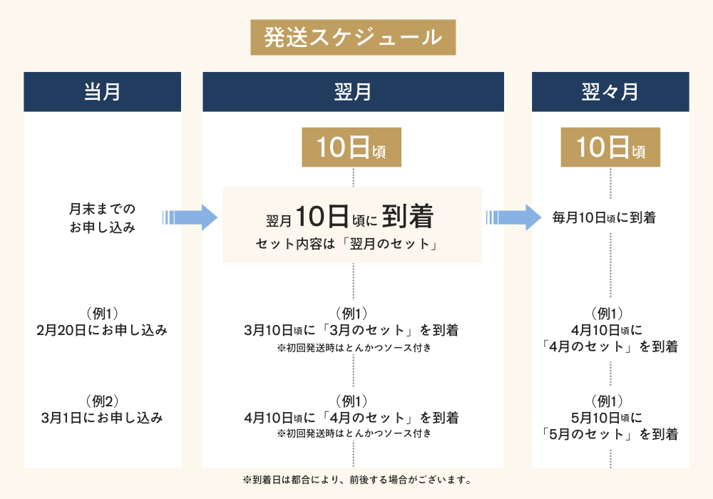 大阪・富田林で30年、職人が一つひとつ丁寧に仕込んだ「とんかつ山田屋」の味を、毎月ご自宅にお届けする3ヵ月コースの定期便です。